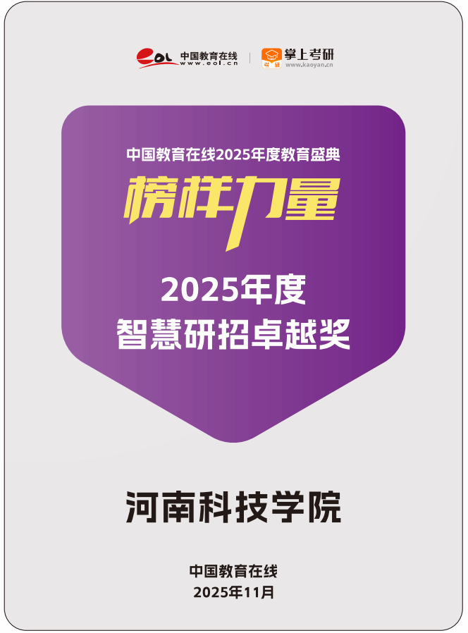 近日,中国教育在线“榜样力量·2025年度教育盛典”优秀案例名单公布。我校凭借富有创新性与前瞻性的招生宣传策略,以及扎实的宣传执行实力,从众多高校中突围,获评“2025年度智慧研招卓越奖”。这一荣誉不仅是对学校近年来致力于研究生招录工作改革与创新的高度认可,更是对学校全体师生共同努力的肯定。