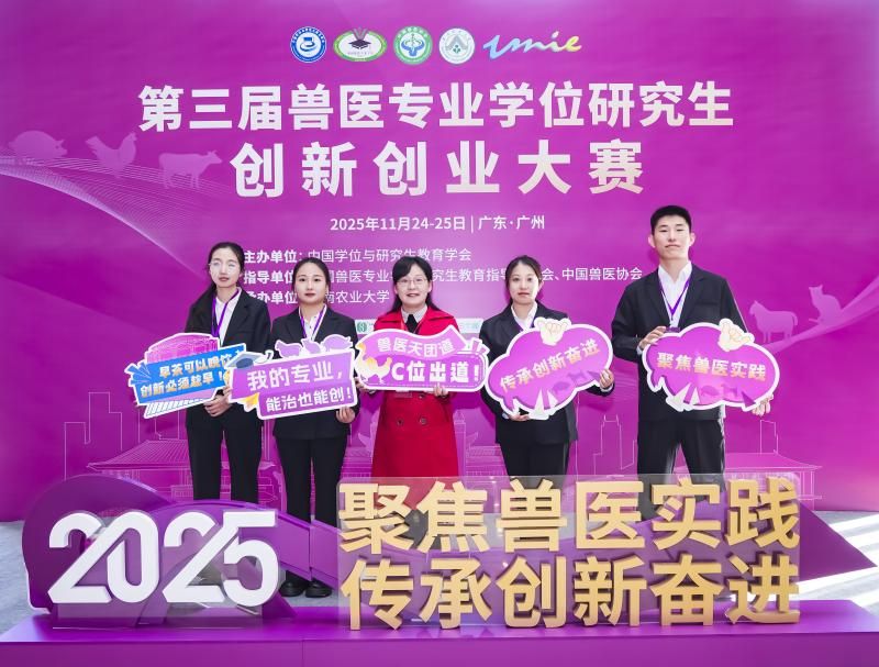 11月24日至26日,第三届兽医专业学位研究生创新创业大赛在广东省广州市圆满落幕。本次大赛由中国学位与研究生教育学会主办,全国兽医专业学位研究生教育指导委员会和中国兽医协会提供学术指导,华南农业大学承办。大赛以“聚焦兽医实践,传承创新奋进”为主题,经过初赛的严格选拔,来自全国48所高校和科研单位的60支参赛队伍脱颖而出,入围决赛,共同展示了兽医专业学位研究生的创新能力和创业精神。