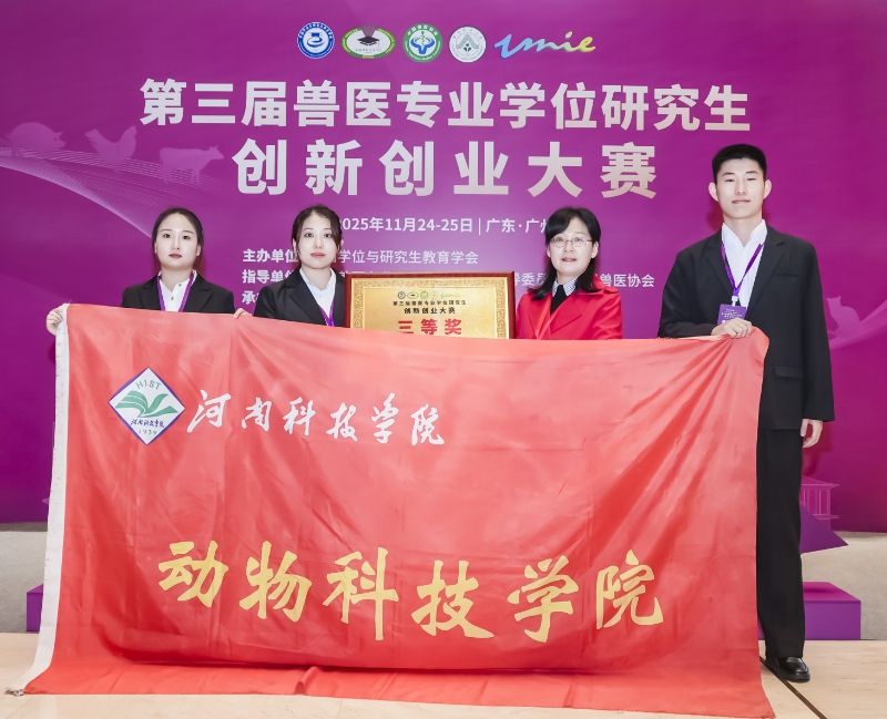 由我校动物科技学院余燕和李成飞老师指导的慧眼本草科研小队,成员包括研究生付梦瑶(队长)、王炳东、张晓一、杨晨、刘飞、梁洋铭,凭借扎实的专业知识和卓越的创新能力,充分展现了兽医专业学位研究生的风采,荣获三等奖。