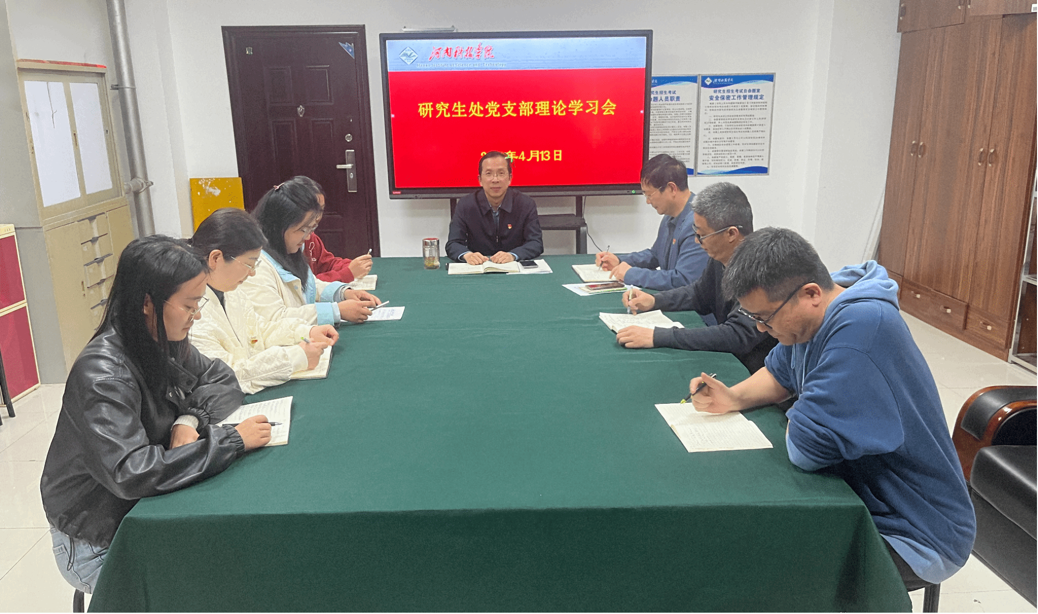 4月13日,研究生处党支部在办公楼301会议室召开理论学习会,会议由研究生处党支部书记李波主持,支部全体党员参加会议。