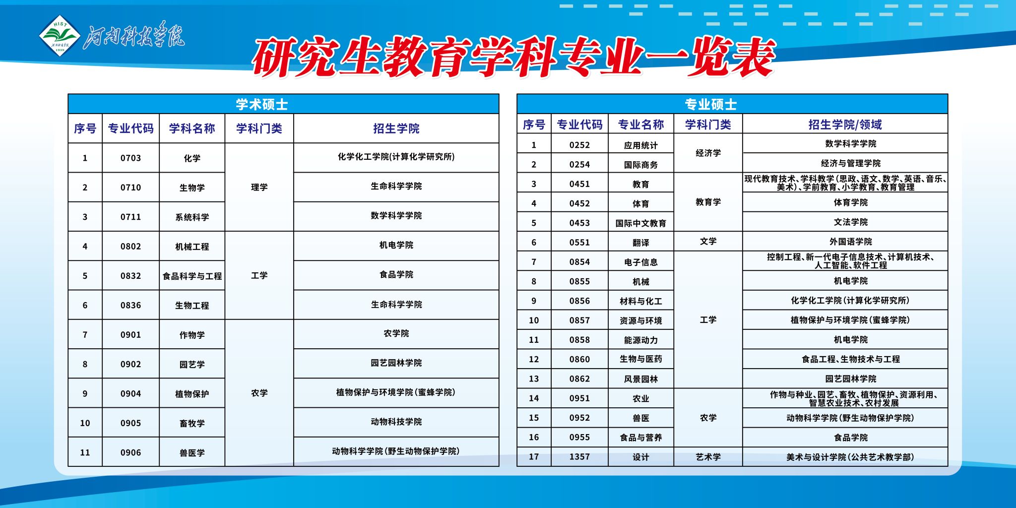 经过二十余年的建设发展,学校研究生教育规模持续扩大。目前全校在校研究生人数达到1856人,分布于22个二级学院。现有硕士学位授权一级学科11个、专业学位授权类别17个,覆盖农学、理学、工学、文学、教育学、经济学、艺术学等7大学科门类(详见下表),学科布局日趋完善。近三年,共有166名硕士生考取博士研究生;获河南省研究生教育教学成果奖8项,建成河南省研究生教育创新培养基地(研究生工作站)13个,获批河南省研究生优质课程、精品教材和优秀教学案例等质量工程项目61项。